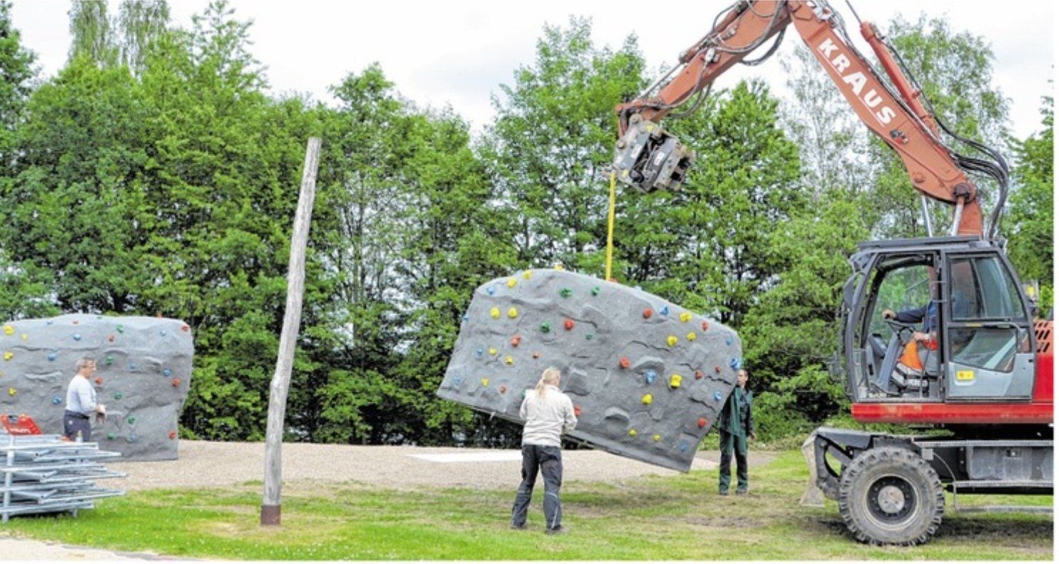 Die Kletterfelsen haben ihren Platz gegenüber dem Seilgarten und hinter der Spielwiese gefunden - nahe des Durchgangs zum "Park der Sinne".