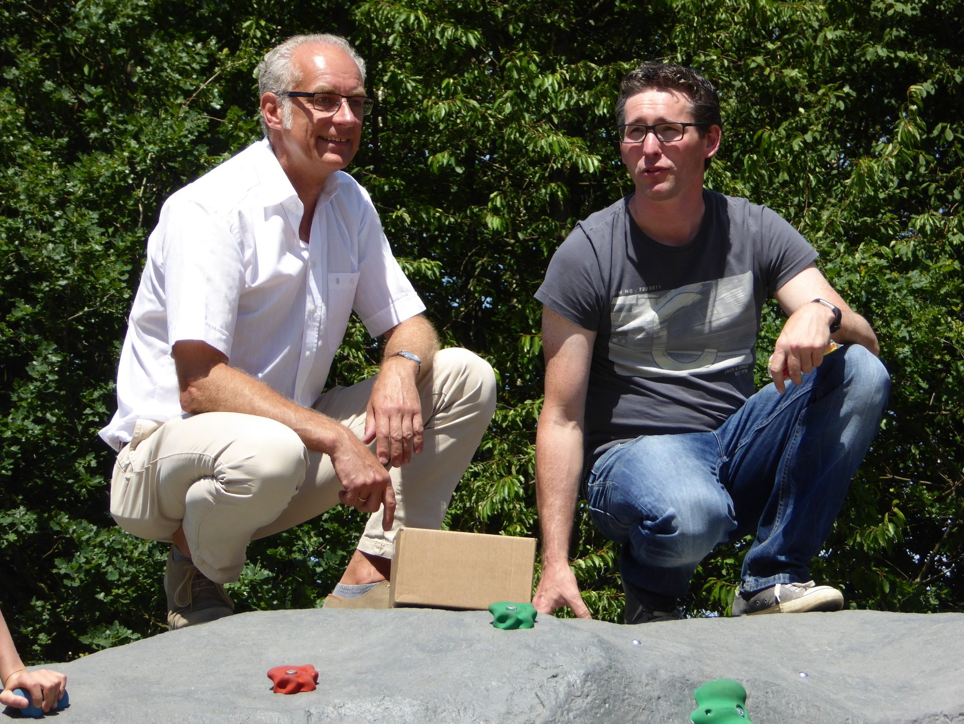 Michael Heilmann und Florian Lötters ließen es sich nicht nehmen, mit sportlich-elegantem Schwung den größeren der beiden Felsen zu erklimmen.