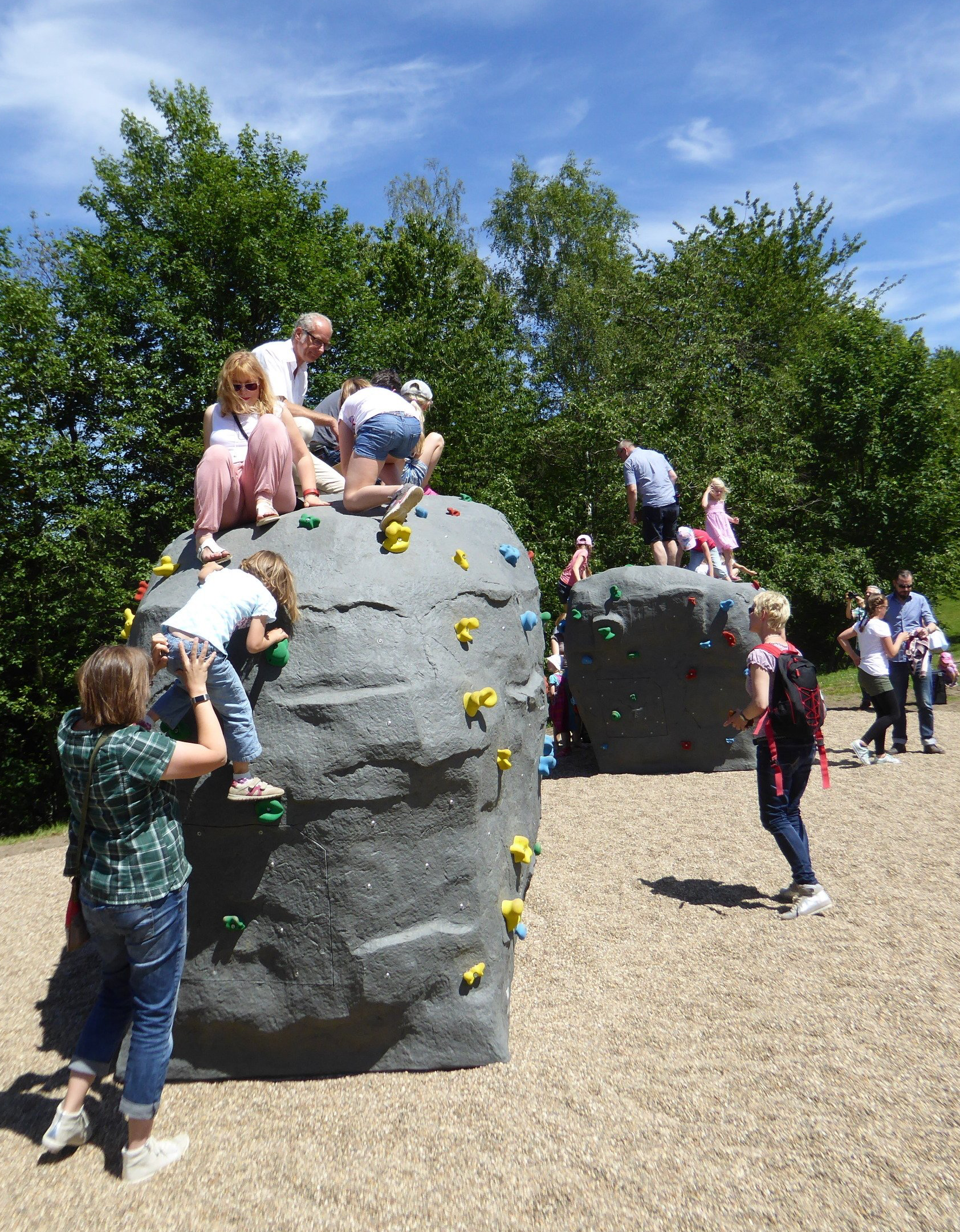 Die neue Attraktion für das Jahr 2017 ist ein Ensemble aus Kletterfelsen. Zwei individuell geformte Kunstfelsen von zweieinhalb Metern Höhe mit Griff-Steinen und Mulden können auf verschiedenen Routen erklommen werden, damit die Kletterprofis von morgen schon früh ihre Koordination, ihren Gleichgewichtssinn und ihr Körpergefühl trainieren. Bouldern nennt man diese sportliche Betätigung ohne Kletterseil.