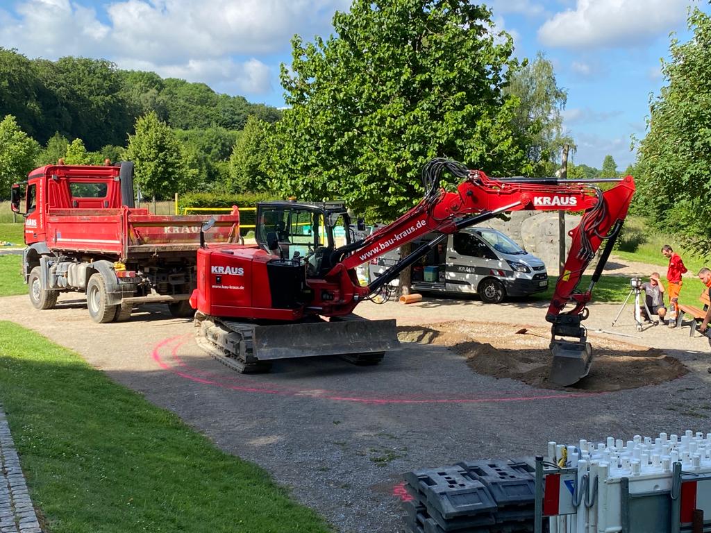 Wegen fehlenden Schattens waren die Lichtsignale, die die einzelnen Spielvarianten steuern, für die Kinder schwer zu erkennen. Zum anderen sorgte die Sonne dafür, dass an den heißen Tagen der Schweiß im Übermaß geflossen ist. Die Fachleute hatten schnell eine Lösung parat: Die Installation eines Sonnensegels. Doch der Teufel steckte in diesem Fall nicht im Detail, sondern in Form von massivem Kalkfelsen im Boden.